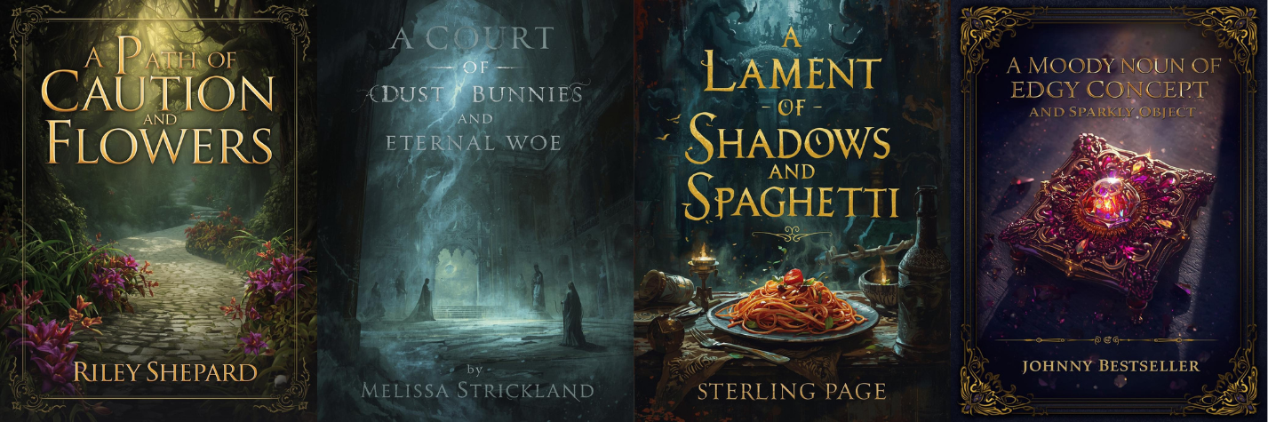 But let’s be real: we’ve now seen the same dance of opposites so many times that the magic is fading. Salt and sorrow, blood and honey, glass and bone… the formula is less creativity and more slot machine: pull the lever, and out pops your moody pairing. After the fifteenth variation of “A Crown of [Fragile Thing] and [Dangerous Thing],” it stops feeling like genius and starts feeling like a randomized fantasy word generator. Honestly, at this point, you could draw nouns out of a hat and end up with a publishable title. (A Lament of Shadows and Spaghetti, anyone?)