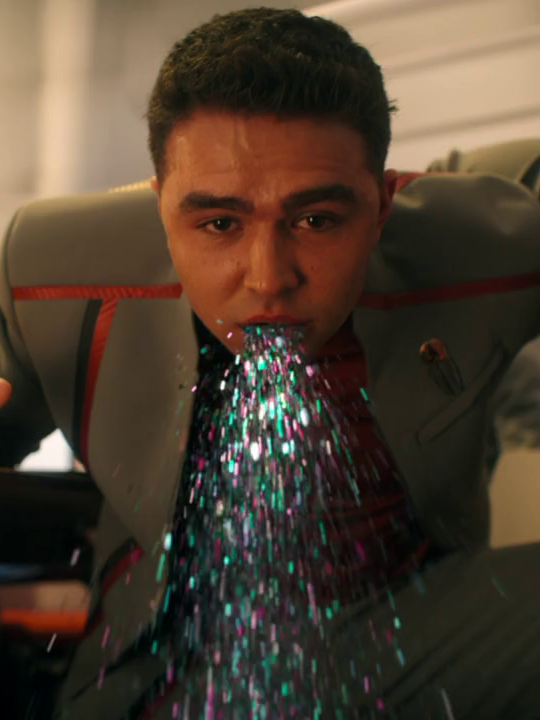 Adding to Darem Reymi’s lambasted character concept, the show piles on a pointless one-off gag just to establish that Khionians vomit glitter whenever they ingest certain foods or drinks. What could have been a subtle alien quirk about a lack of enzymes is turned into a juvenile, eye-roll-inducing visual punchline.